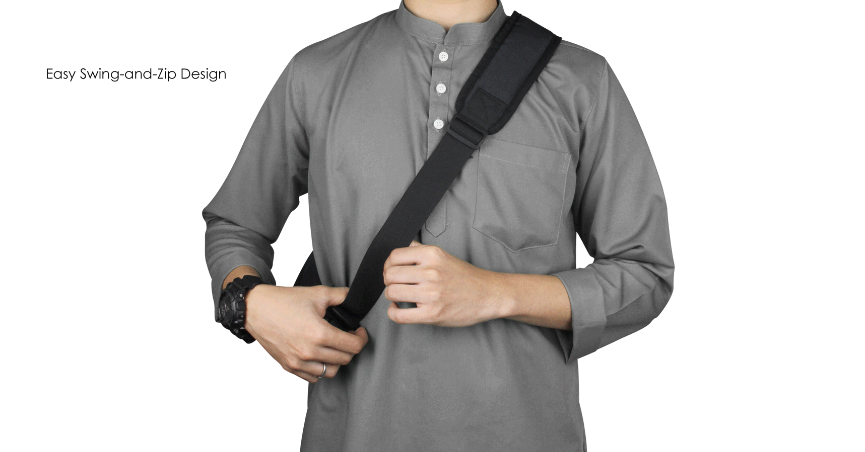 • Easy swing-and-zip design for fast, on-body access